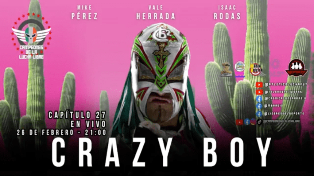 En este episodio de Campeones de la Lucha Libre, Mike Pérez y Vale Herrada e Isaac Rodas entrevistan a la leyenda de la lucha libre mexicana, Crazy Boy.