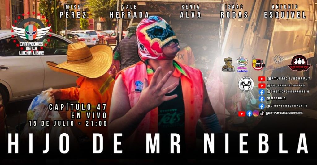 En este episodio del programa Campeones de la Lucha Libre, Mike Pérez, Vale Herrada, Isaac Rodas y Antonio «El profe» Esquivel entrevistan al Hijo de Mr. Niebla, un luchador que está siguiendo los pasos de su legendario padre.
